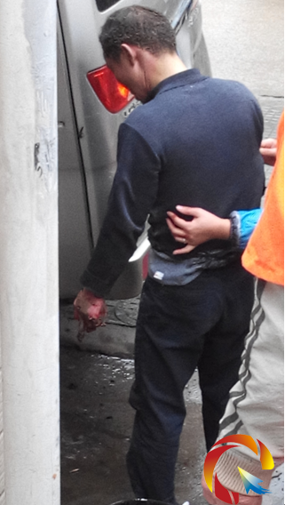 修車師傅的手被燒傷