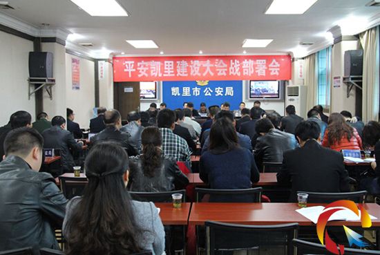 本網訊 近日,“平安凱里”建設大會戰部署會議在凱里市公安局二樓視頻會議室召開,各鄉鎮街道在轄區派出所設分會場。會議的主要任務是深入學習貫徹黨的十八大、十八屆四中全會和省委十一屆五次全會精神,深入學習習近平總書記系列重要講話精神和深入推進平安中國建設的重要指示精神,深入分析推進平安凱里建設面臨的形勢,深刻汲取“1·13”案件的經驗教訓,舉一反三,堅決打好平安凱里建設大會戰,進一步深化平安凱里建設,為全面建成小康社會創造穩定和諧的社會環境。