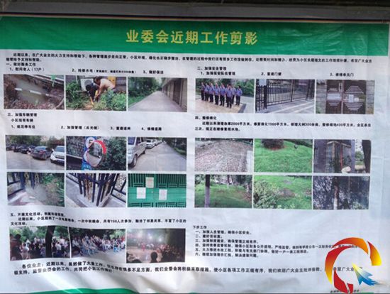 余阿姨告訴我們,自從今年5月份小區(qū)自治以來,物業(yè)管理服務健全,管理制度上墻,管理人員熱情服務,無與業(yè)主爭吵現象,2014年中秋節(jié),業(yè)主委員會全體成員對小區(qū)80歲以上高齡、病殘、孤寡老人進行上門慰問,業(yè)主委員會還對整個小區(qū)生病住院信息有詳細登記,以社區(qū)、業(yè)委會的名義對住院的小區(qū)業(yè)主進行關心,業(yè)主們都很感動,這增加了小區(qū)業(yè)主之間感情溝通。