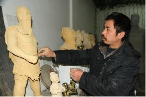 李英帥的泥塑作品樸素典雅,獨具民族個性,深愛廣大顧客的青睞。 (雷安平)
