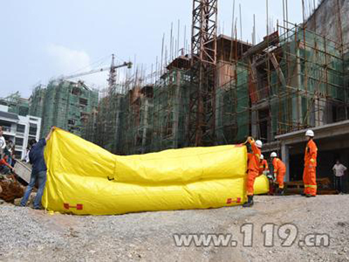 10時48分,消防官兵到達現場后,只見該男子坐在二十米高的吊塔上,情緒十分激動,隨時有失足墜落的危險。現場救援官兵了解情況后,立即確定了救援方案,采用勸說的方法,并在其下方鋪設救援氣墊。經辦案民警和消防官兵的共同努力下,與民工所在的工地負責人進行協商,終于達成協議,當場將拖欠的工資全部清算,跳樓民工也從吊塔上安全的抵達地面,救援行動圓滿結束。