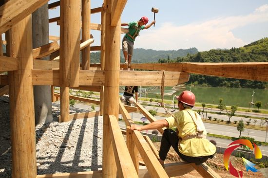 圖為郭太文三兄弟今年6月完成建造的湖南靖州縣坳上全木質鼓樓工程