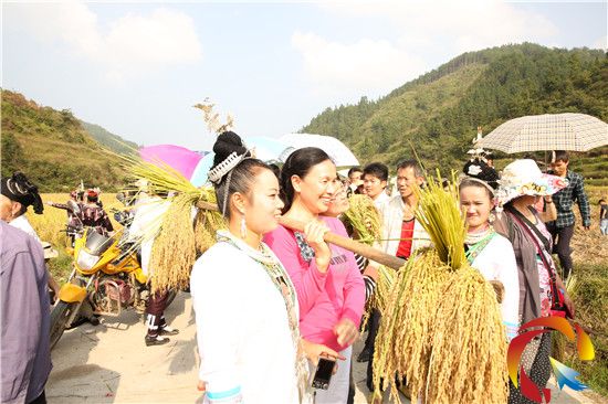 驢友們體驗(yàn)侗家人挑禾的情形