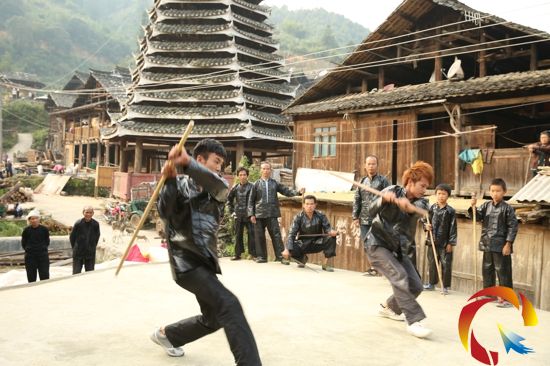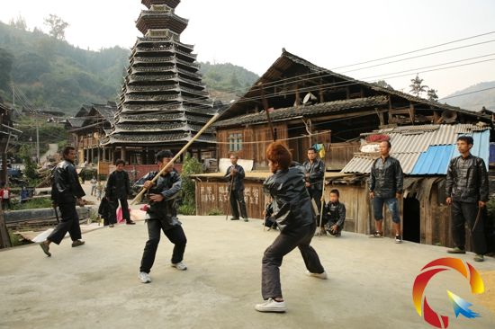 黎平縣雙江鎮覓洞村是一個傳統武術村,全村1128人口中,尚武的習俗占80%以上,10歲以上的男丁,人人都有一套武打防身的本領。該村寨老吳德金說,覓洞村崇尚武術,祖輩相傳400多年,它源于明朝末期,當時兵荒馬亂,覓洞村經常被強盜侵掠。