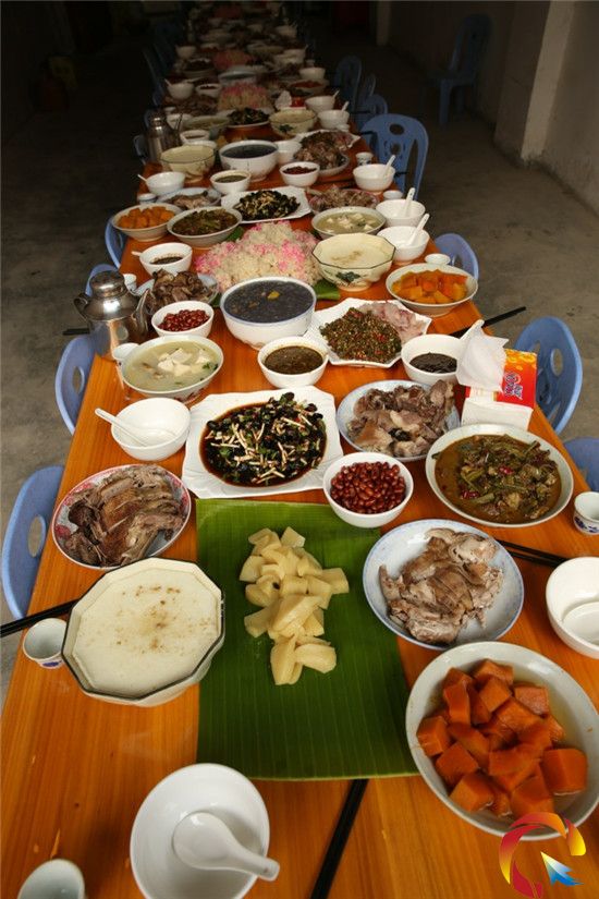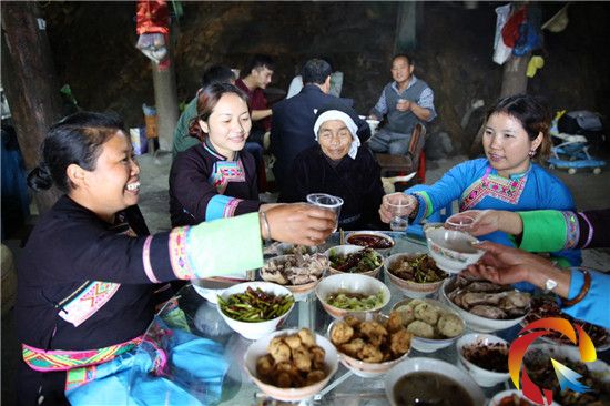 2014年春節(jié),茨洞村總計有18位女子出嫁,18位娶親的男子共出動了1800人迎親,在迎親過程中,大伙統(tǒng)一挑著禮物一一送往出嫁的女子家,場面非常壯觀。圖為茨洞村一戶有成年女子的人家做豐盛菜肴招待媒人的情形。(陸書明 楊露 攝影報道)