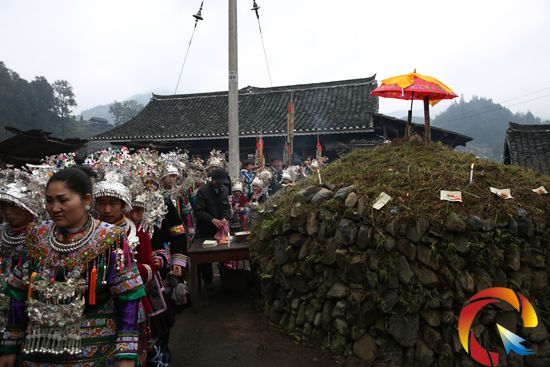 圖為岑湖侗寨的寨老,正在繞寨的情形