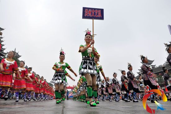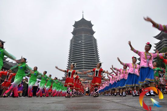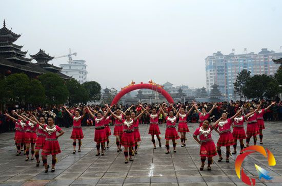 本網訊 12月27日,黎平縣舉辦“天籟黎平”侗族廣場舞展演活動,來自各鄉鎮、社區1000余名侗族群眾在縣城文化休閑廣場展示自編的帶有侗族元素的廣場舞,為市民們獻上了一場獨具侗族特色的廣場文化盛宴。(楊代富)
