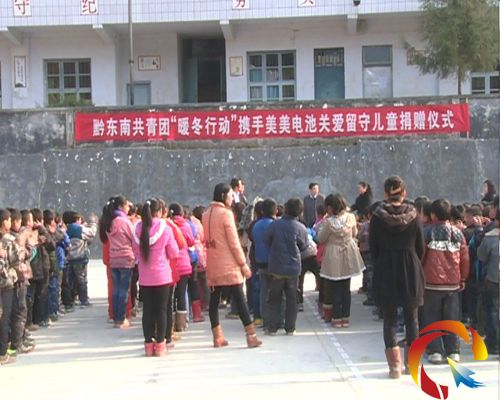 1月2日,共青團黔東南州委“暖冬行動”攜手美美電池關(guān)愛留守兒童捐贈儀式在雷山縣達地鄉(xiāng)民族學(xué)校舉行,州縣共青團、縣相關(guān)單位、達地鄉(xiāng)相關(guān)負責(zé)人出席捐贈儀式。