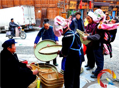 從丹江鎮排卡村6組到西江來趕“流流場”的李碧武老人告訴筆者,西江發展旅游,他的手工竹器很受歡迎,不僅家庭主婦、本地農婦購買實用、往來游客購買紀念,而且各戶“農家樂”、“苗家樂”也購買不少。今天,西江一家“農家樂” 一氣買了他12個竹簸箕去作房屋裝飾品,他得了720元;2013年,丹江鎮楊梅、葡萄果農跟他訂購竹制果籃果筐就有900個之多。據悉,目前在雷山,像這樣施展傳統手工藝編織打制生產生活用具,活躍在城鄉趕市場忙創收的老人有3200余人。(余國德)