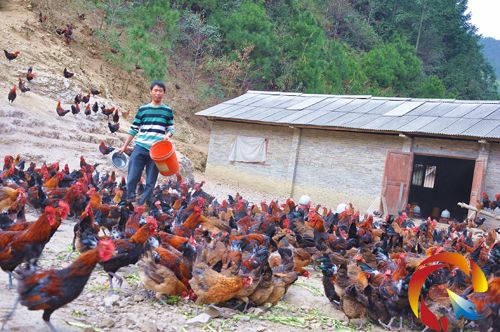 目前,唐軍養有土雞12000余只,解決5名工人就業。因產品看好,養殖規模擴大,他在政府惠民政策幫助下,正式注冊并掛牌成立了“雷山縣排翁田園山水土雞養殖場”。