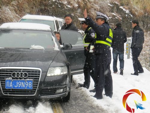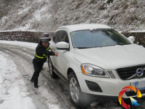 2月18日,全州迎來新一輪大范圍降雪天氣,道路雪封、車輛、人員受阻,為返程游客行車安全,雷山縣西江景區交警部門出動警力22人次,一路上鏟冰、除雪、鋪設防滑砂,為被困車輛推入安全區,給游客排憂解難,贏得連聲致謝。(吳耶你 潘亞\攝)
