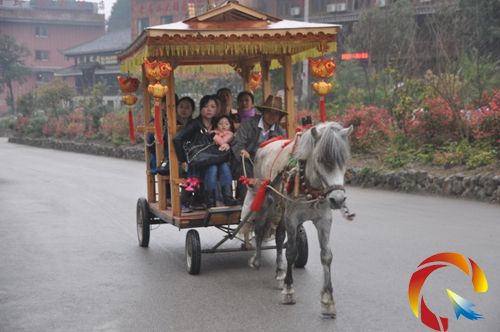 然而記者在西江看到,游客體驗馬車觀光和苗族服飾成亮點。(侯天智 余仕光攝影報道)