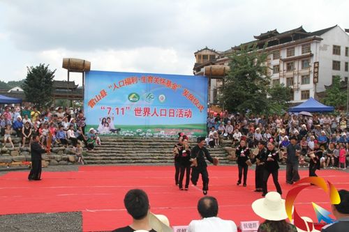 本網訊 7月8日下午,雷山縣委、縣政府利用苗族農歷六月“吃新節”熱鬧集會,在縣城木鼓廣場舉行“人口福利·生育關懷基金”發放儀式暨“7.11”世界人口日大型宣傳活動。