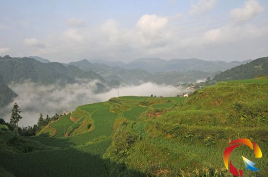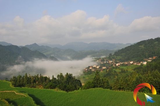 本網(wǎng)訊 昨晚一場夏雨過后,距西江千戶苗寨只有一坡之隔的雷山縣西江鎮(zhèn)連城村被濃濃的晨霧朧罩著,隨著太陽漸漸升起,晨霧便開始涌動(dòng)起來,慢慢向上蒸騰和彌漫,半坡中的民居和層層梯田若隱若現(xiàn),美如仙境。(潘國雄 攝影報(bào)道)