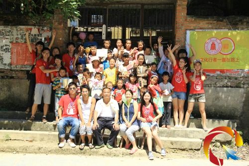 四川大學(xué)文化行者和控拜小學(xué)的師生合影