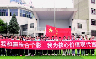 雷山縣團委組織開展“我和國旗合個影、我為核心價值觀代言”活動,喜慶祖國六十五歲生日,一起祝福祖國繁榮昌盛。(楊華 明道然 攝)