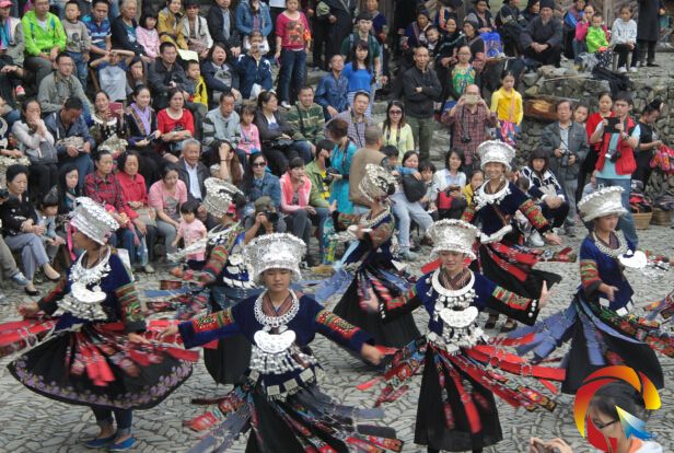 在雷山苗年當天,雷山縣16萬人民身著節日盛裝,載歌載舞,無比熱鬧與歡騰。那精湛的苗族服飾,巡游時是“銀河”,表演時是“銀海”,場面可謂無比壯觀。