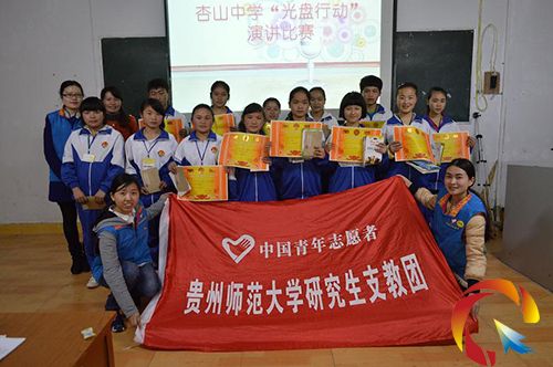 比賽取得圓滿成功。選手和評委老師進行了合影留念,此次活動旨在用演講的形式來倡導大家節約糧食,吃多少盛多少,吃光盤中的食物。一起來做“光盤族”,你愿意嗎?(舒夢月 )