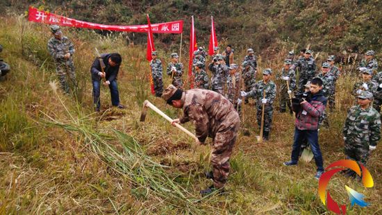 縣人武部官兵、龍山鎮(zhèn)政府的干部職工經(jīng)過一天的辛勤勞動,栽植苗木2000余株。(潘紅梅 彭德華)