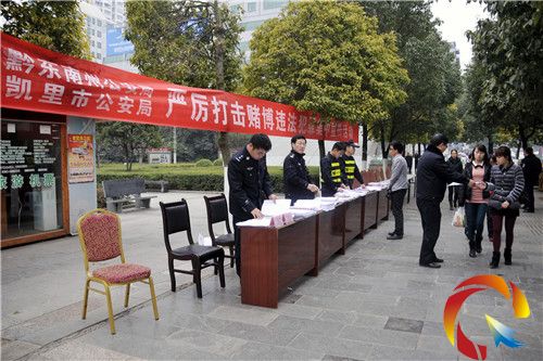 2014年1月26日上午10時,全州禁賭宣傳活動在凱里市萬博廣場舉行,黔東南州公安局以及凱里市公安局聯合開展宣傳,同時將進行第四次銷毀賭具行動,計劃銷毀各種賭具245臺(麻將機169臺,游戲機76臺)。