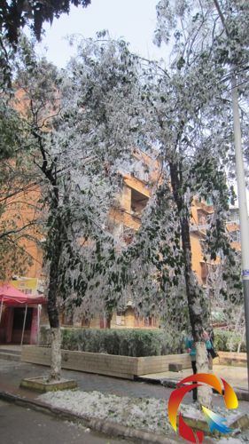記者隨后趕到現場,經了解得知,原來是該樓門前的一處水管大約在2月13日凌晨四點發生爆裂,水花四濺淋致路邊的樹木上,經過低溫的“洗禮”,才形成了美麗的獨特冰棍風景,真是符合那句“天氣的寒冷,只水滴會記得”。