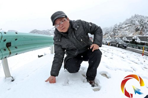 當日上午,滬昆高速公路(凱麻段)上,路面被厚厚的冰雪覆蓋著,只有超車道和行車道上稍有融化,那是交警和高速部門連夜撒鹽除冰的結果。
