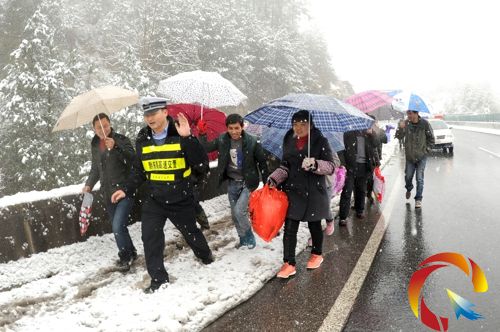 在大雪里走了40多分鐘,鞋里灌滿了雪水的楊生豪與前來接應的民警一起將這15名山區群眾送到了路口,望著村民們安全離開高速路后,他們這才放心的回到車上。雖然急著趕路,但村民們在離去之后,仍頻頻向交警們招手致意。