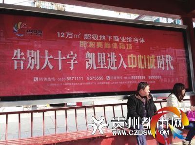 2月21日上午,記者根據市民提供的線索,到大十字及附近區域走訪。在這一帶,兩個地下開發工程的宣傳廣告都能看到。其中中心城的戶外廣告集中在公交站臺設施上,而大十字人防工程的廣告則張貼在大十字四周的施工墻壁上。記者注意到,兩者有一些廣告詞是相互抵觸的,其中最明顯的是“告別大十字,凱里走進‘中心城’時代”和“大十字成熟商圈,龍頭地位不可取代”。