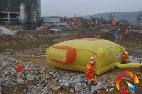 消防官兵在地面上鋪設(shè)了消防氣墊