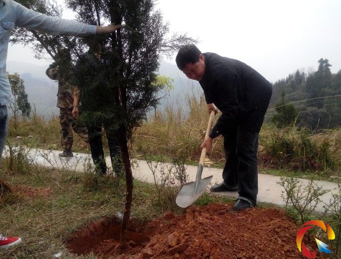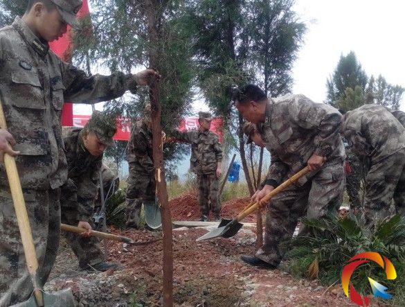 圖為縣人武部副部長劉輝帶領植樹現場