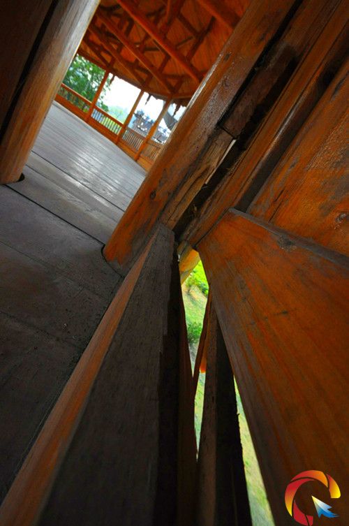 在二樓長廊的內側,有一個“美人靠”,它是供游人休息的,疲憊的游客靠上一靠,渾身舒坦。但現今,這“美人靠”不能靠了,否則,整個人可能會栽下一樓,那后果將不堪設想,因為“美人靠”上的起到支撐作用的木條,也被破壞掉。貴州館二樓東側是“閣樓式”的廂房。以前,這廂房四面都是板壁,有一道門可以進入。但如今,連接長廊一道板壁及安置在板壁右側的門均不見了。