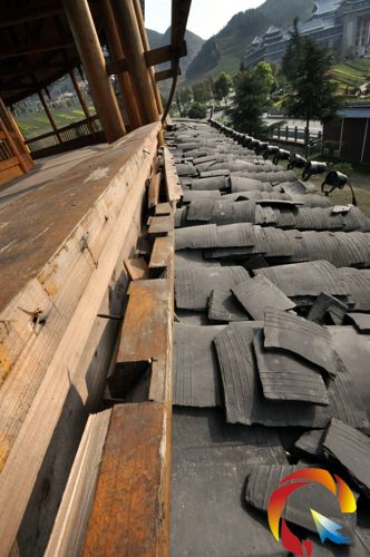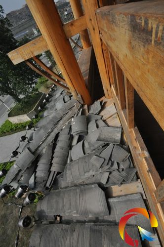 二樓上的木板長廊問題也不少,因為部分木板被破壞,致使長廊上出現了漏洞,比較大的漏洞足以裝下成年人的一條腿,所以游客一旦踩空,將會很危險。此外,貴州館上的瓦片、門窗等,都出現了被破壞的痕跡。