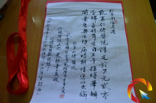 說起這份請柬,仁德醫院的院長龍金濤是津津樂道。龍院長說,最初院方的想法是使用普通的請柬,后來有朋友進言說,現今倡導國學文化,如果使用手書的毛筆請柬,更顯現了院方的真誠態度。