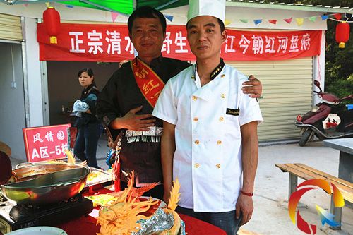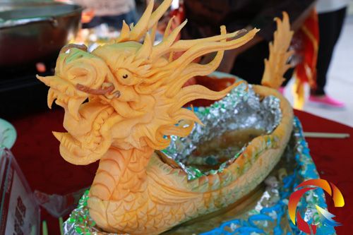 在美食節現場記者見到,19號參賽隊——臺江今朝紅河魚府帶來的參賽作品全魚宴與香菇尋寶,其中,賽龍舟、菊花魚、甜品鴿蛋、鴛鴦野生魚、農家苗王魚等十多道用工藝雕刻的美食不僅是從視覺上還是味覺上都大大的吸引了食客前來圍觀和品嘗。