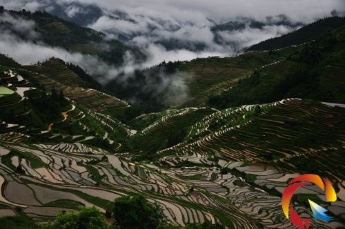 本網訊 進入五月,已是雨水豐盈季節,一場場暴雨使山野綠意盎然生機,位于榕江縣和從江縣交界處的月亮山梯田,雨后云霧繚繞,依山延綿的梯田在霧景的襯托下,如置云端,飄渺動人,如夢似幻。(胡濤 攝影報道)