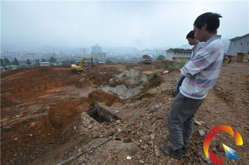6月4日上午,記者接到線索后趕赴麻江采訪,石室墓所在的工地在縣檔案館西側150米處的坡面上,坡度很陡,因為專家和工作人員已撤出,現場冷冷清清。