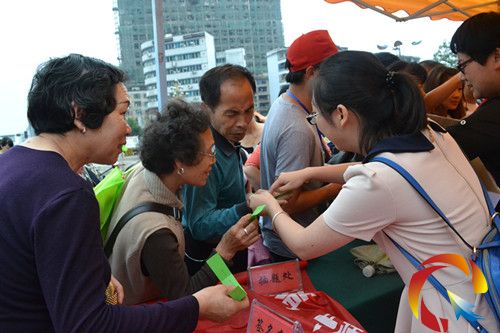 現場雖然下著小雨,但依然阻止不了工作人員和市民的熱情。一方面工作人員積極地向市民宣講環保知識,講解綠色消費、節約環保的好處,并現場發放綠色環保袋。另一方面,與市民通過現場搶答問題的互動形式,讓市民更多了解環保知識,營造良好的宣傳聲勢。
