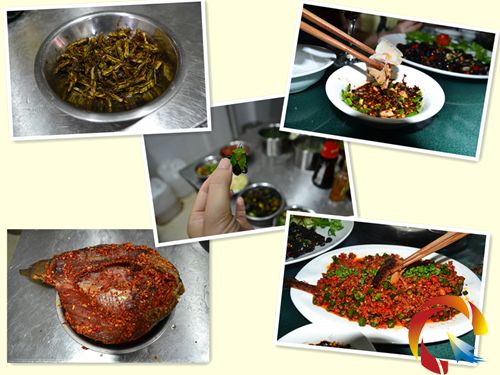 劍河風味館內的劍河名菜不僅于此,老板娘在介紹完該道主菜后,又吩咐廚房做出了極具劍河特色的油炸九香蟲和油炸螞蚱,最后一道純家制腌魚端上桌時,便最恰當的給“劍河風味”做出詮釋。