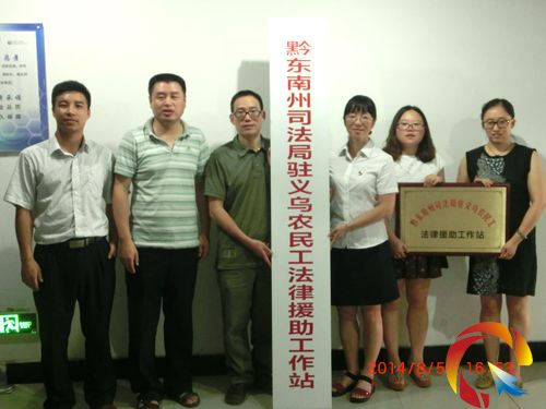 本網訊 8月5日下午,黔東南州司法局駐浙江省義烏市農民工法律援助工作站在浙江省義烏市外來農民工法律援助工作站掛牌成立,這是黔東南州建立的首個跨省異地協作法律援助平臺,其目的是為全州在浙江一帶打工農民工提供高效便捷的法律援助維權服務。