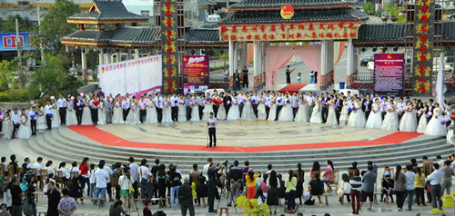 據了解,參加集體婚禮的百對新人都是來自全州各地已依法完成結婚登記的適婚青年,他們中間有機關單位的公務員、事業單位人員,有個體老板,還有外出或外來務工人員。
