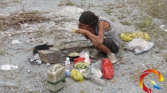 經詢問得知,老人姓羅,今年已經65歲,是廣西壯族自治區桂林市人,在成都拾荒多年,一個月前從成都出發準備回桂林,想沿著高速公路回家,一路上靠撿垃圾,賣礦泉水瓶等維持生計,走累了餓了就在路邊生火煮野菜吃,自己都走破了好幾雙鞋,現在也不知道這里是什么地方。