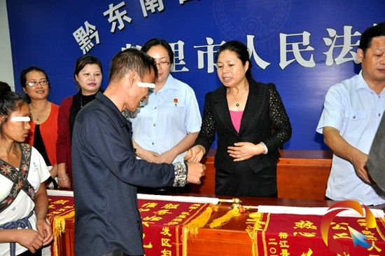 本網訊 “謝謝州婦聯和法律援助中心為我們作主,維護了婦女兒童的合法權益。沒有你們,我們這兩個家庭真的不知怎么辦了!”兩名分別來自劍河縣、榕江縣偏遠農村的進城農民工,緊緊握著州婦聯主席陳曉瓊的手激動地說,隨后將印有“服務婦女兒童 維護合法權益”兩面錦旗送給了州婦聯。這感人的一幕發生在10月11日凱里市人民法院法庭上。