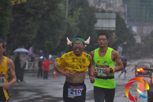 在11月7日舉行的2014貴州環(huán)雷公山超100公里國際挑戰(zhàn)賽上,一位穿著奇特的跑者,吸引了眾人的目光。