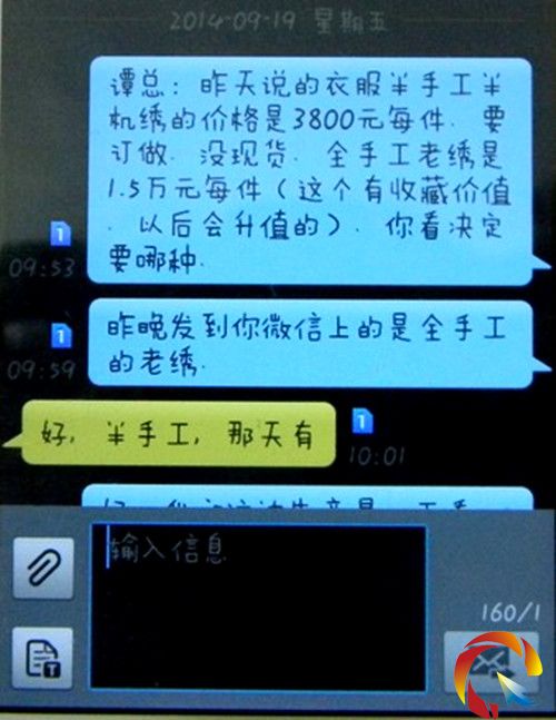 譚某告訴記者,他確實和黔東南仰優民族工藝品有限公司協商了幾次未果,并表示會把簽訂合同的物件余款在這個月底付清,但沒有簽訂合同百鳥衣因價格過高還需與對方協商。