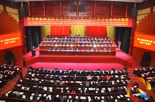 下午2時30分,羅亮權宣布: 黔東南州第十三屆人民代表大會第四次會議開幕!全體起立,雄壯的中華人民共和國國歌在會場內唱響。