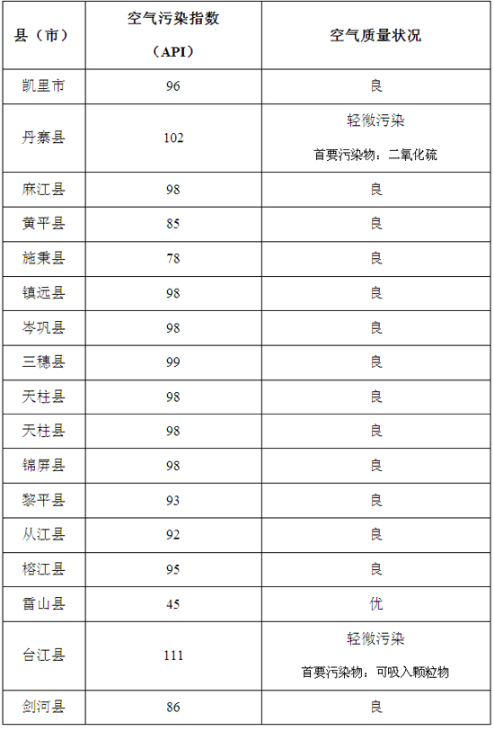 2014年1月3日黔東南州各縣(市)環境空氣質量日報