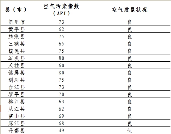 2014年2月12日黔東南州各縣(市)環境空氣質量日報