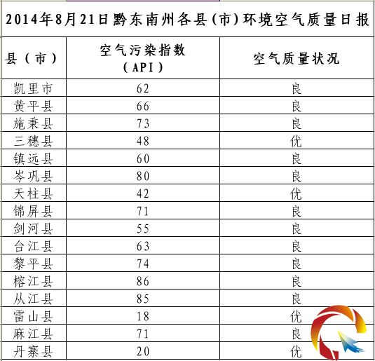 2014年8月21日黔東南州各縣(市)環境空氣質量日報