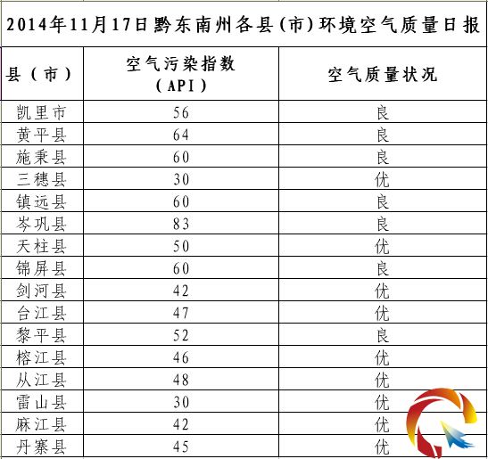 2014年11月17日黔東南州各縣(市)環境空氣質量日報