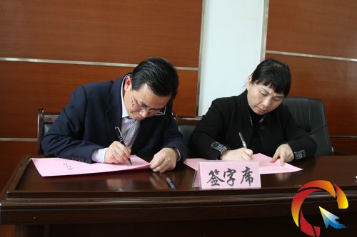 副縣長陳國勝(左)與教育局長吳玉梅簽訂責任書